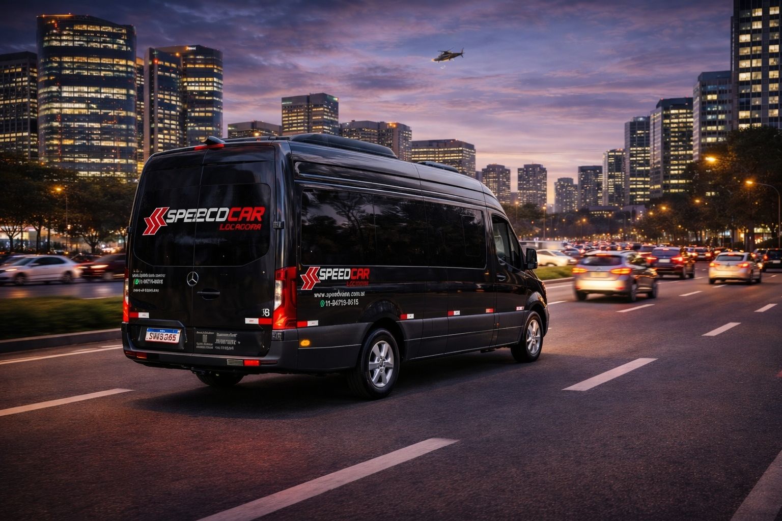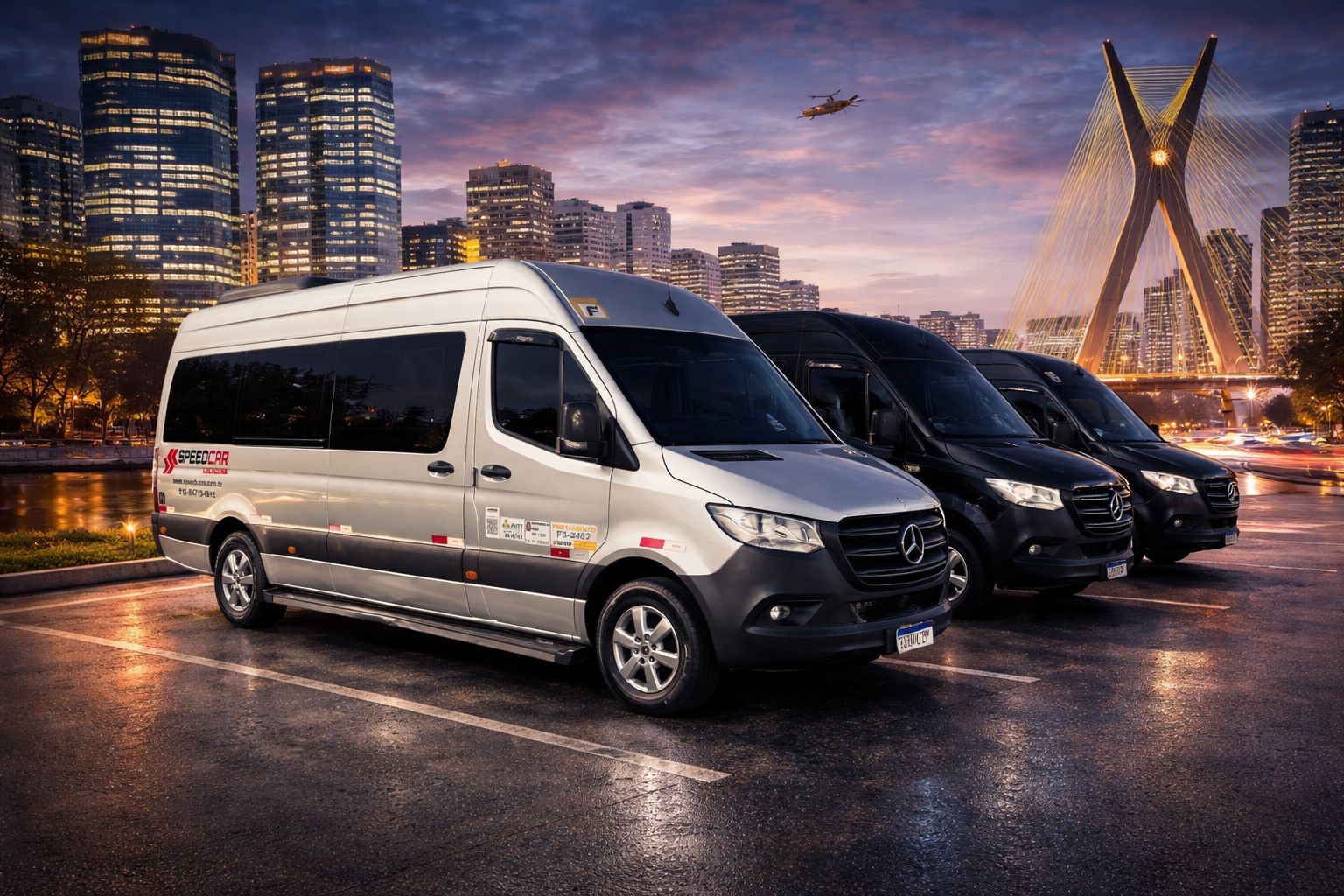 Van executiva da Speed Vans realizando transporte de funcionários em São Paulo com conforto, segurança e pontualidade.